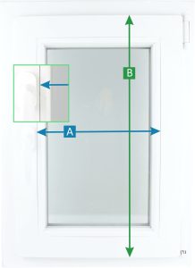 B - szerokość samej szyby (taka będzie szerokość tkaniny)